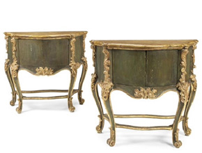 Rococo revival serpentine commodes Oct 13, 2014 by Jamie Richards A pair of Italian 19th Century Rococo revival painted and parcel gilt serpentine commodes